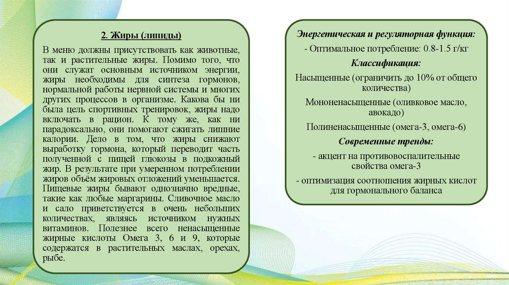 2. Жиры (липиды)Энергетическая и регуляторная функция: