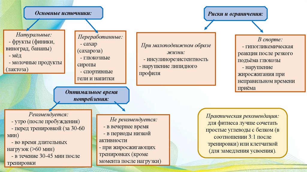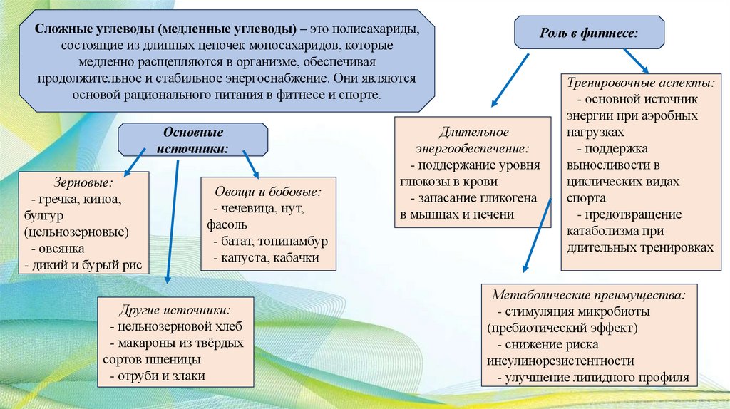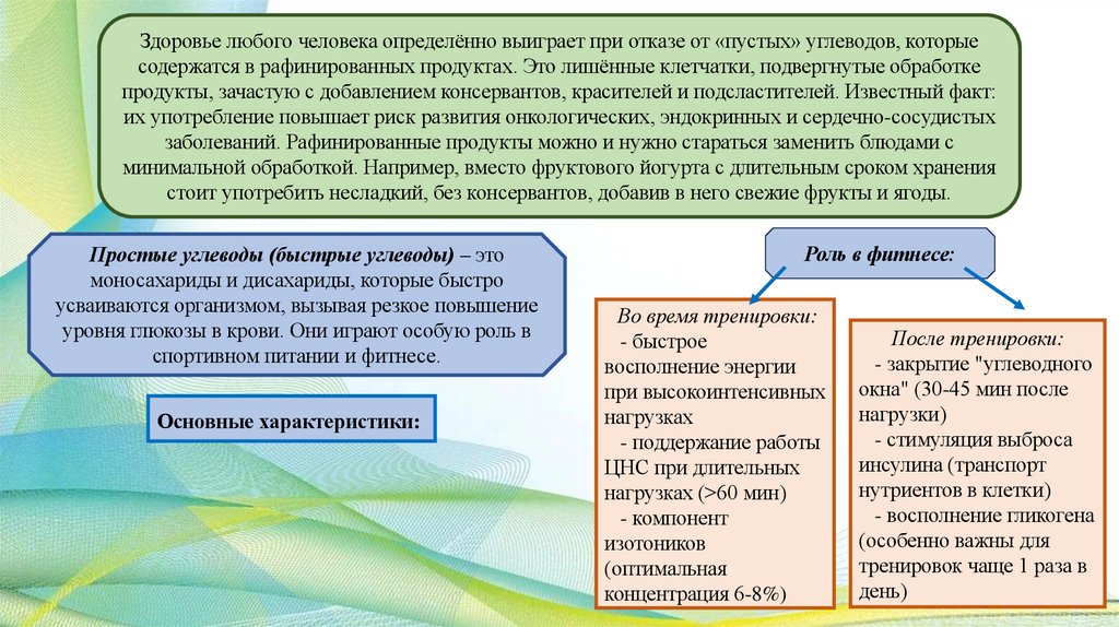 энергией. Простые или «быстрые» углеводы (такие как глюкоза, фруктоза, сахароза и др.) усваиваются
