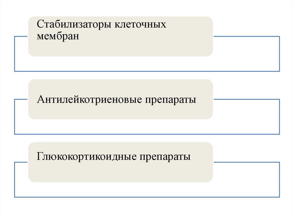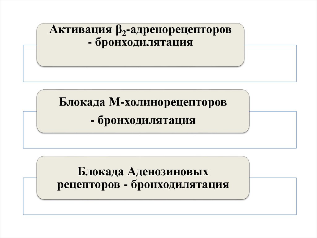 • Предотвращают бронхоспазм за счет угнетенияактивности фосфодиэстеразы в тучных клетках и