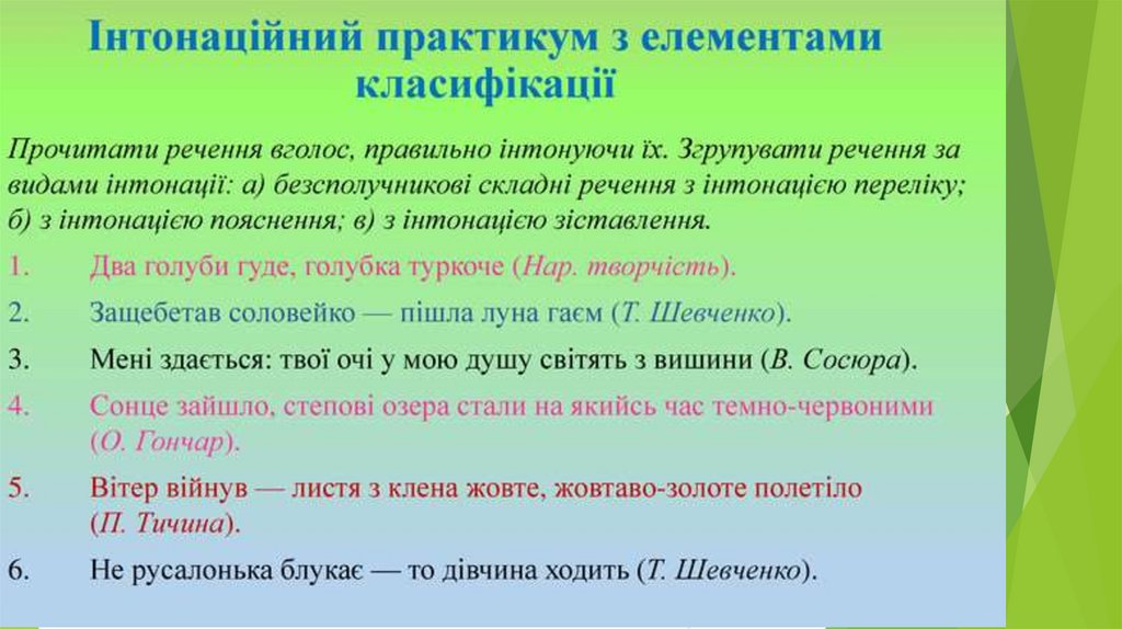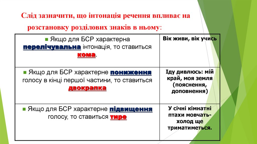 Слід зазначити, що інтонація речення впливає нарозстановку розділових знаків в ньому: