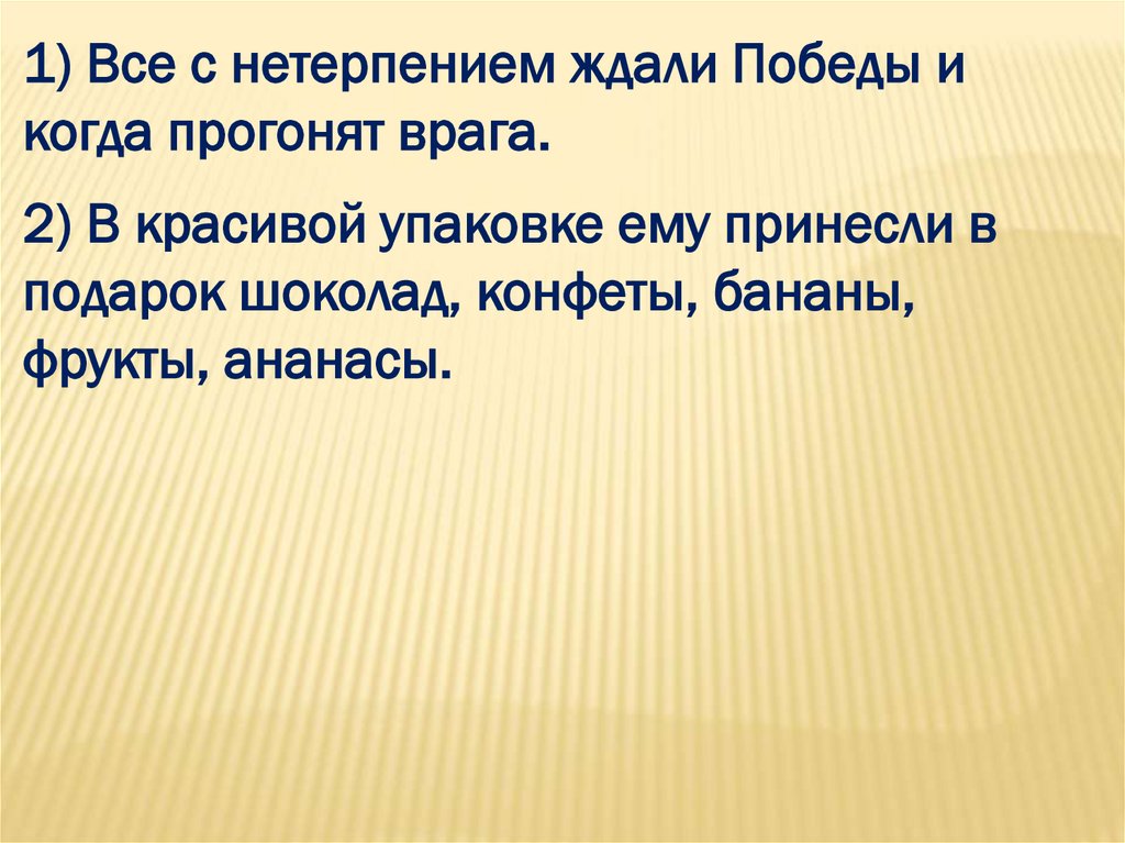 1) Все с нетерпением ждали Победы икогда прогонят врага.