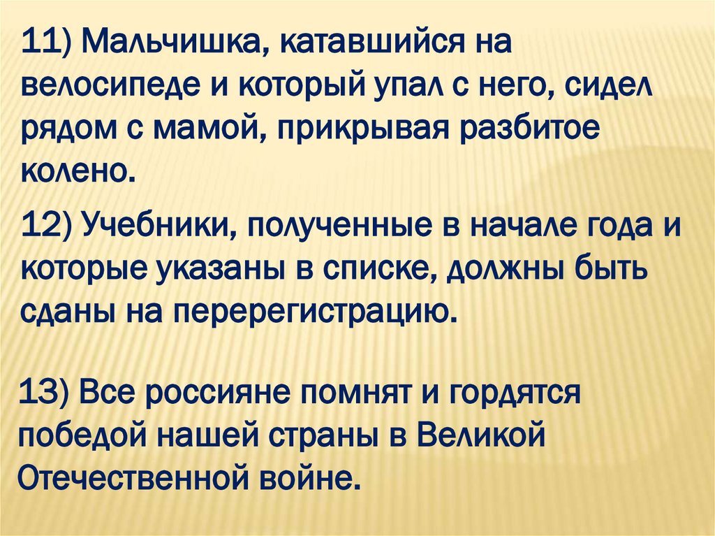 11) Мальчишка, катавшийся навелосипеде и который упал с него, сидел