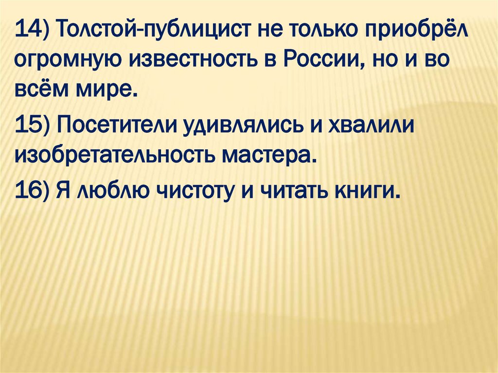 14) Толстой-публицист не только приобрёлогромную известность в России, но и во