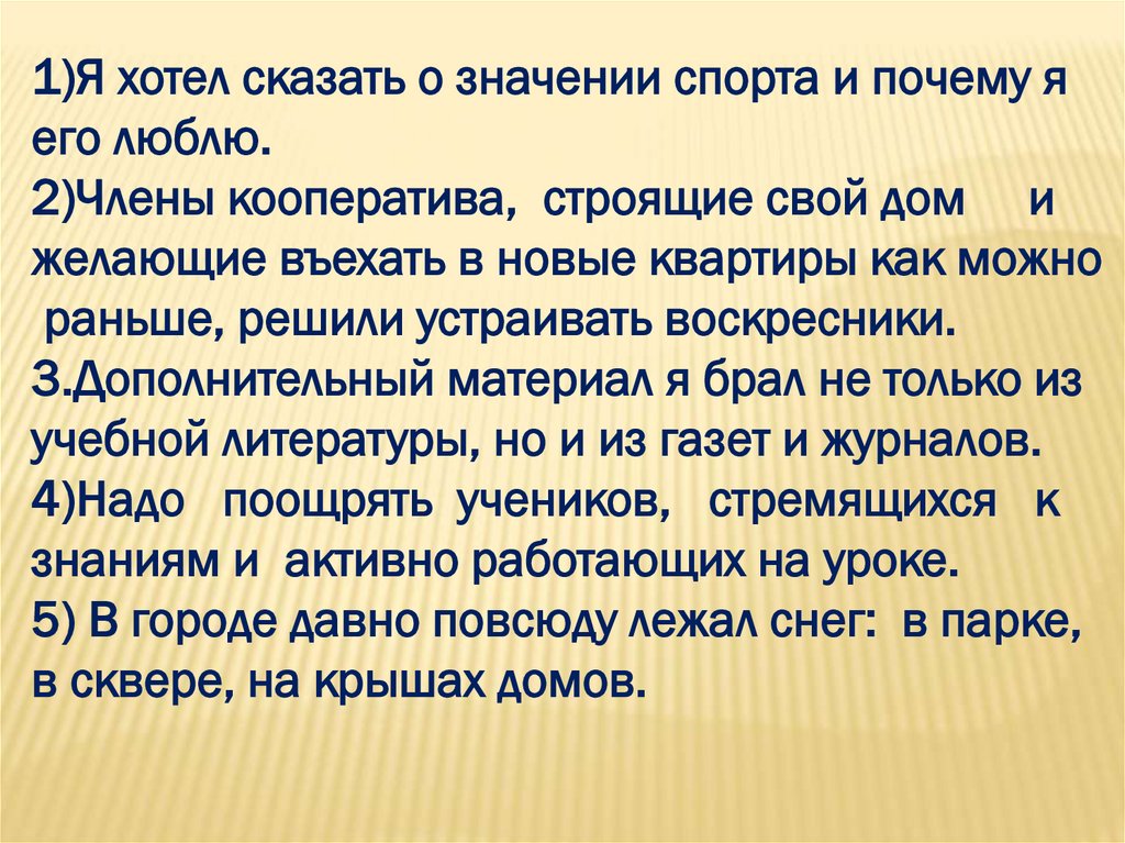 1)Я хотел сказать о значении спорта и почему яего люблю.