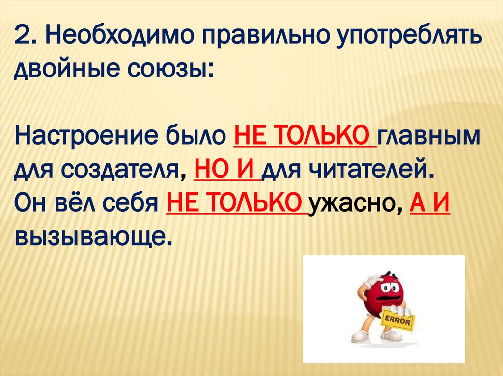 2. Необходимо правильно употреблятьдвойные союзы: