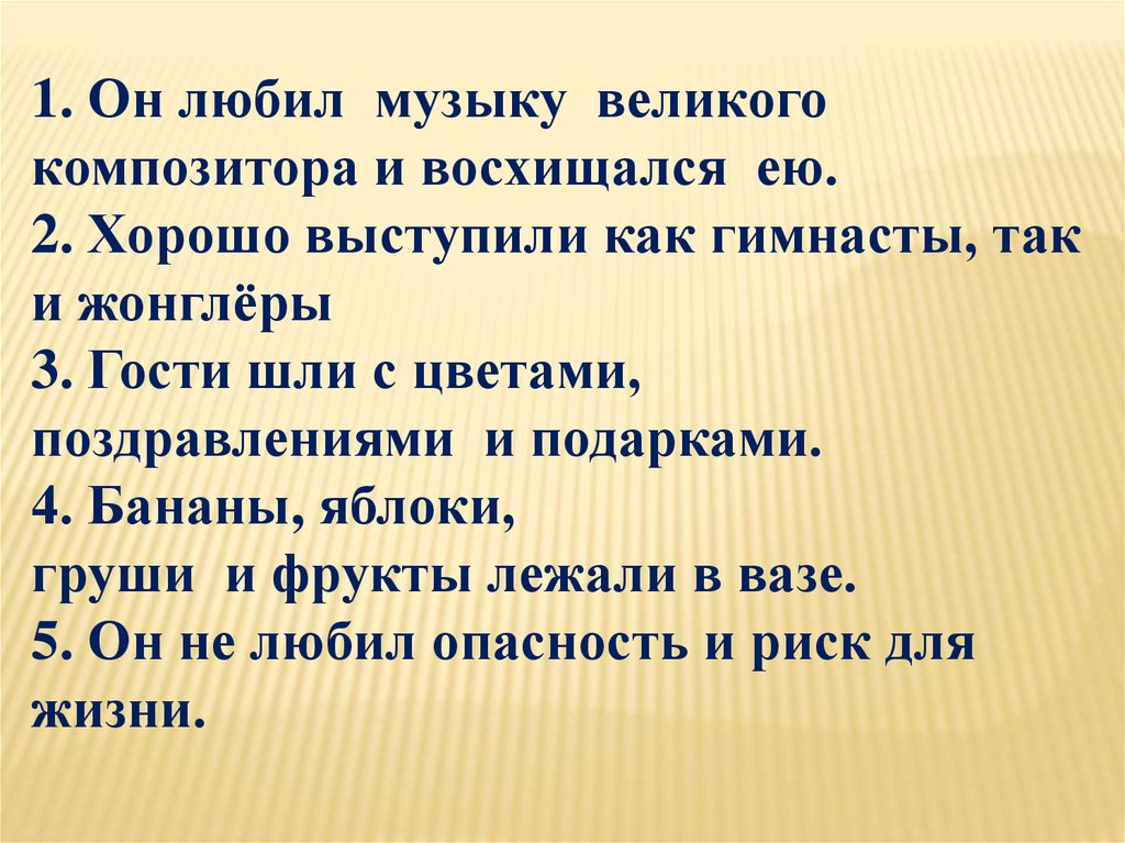 5) Мы любили и гордились поэтом.