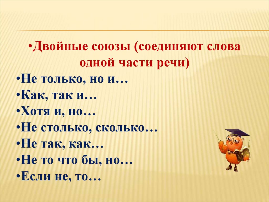 •Двойные союзы (соединяют словаодной части речи)