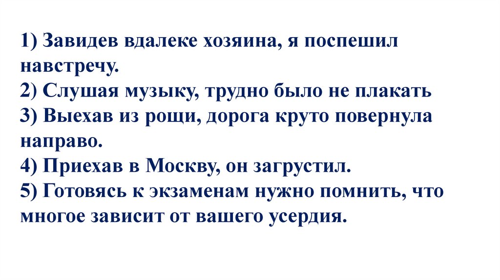 1) Завидев вдалеке хозяина, я поспешилнавстречу.