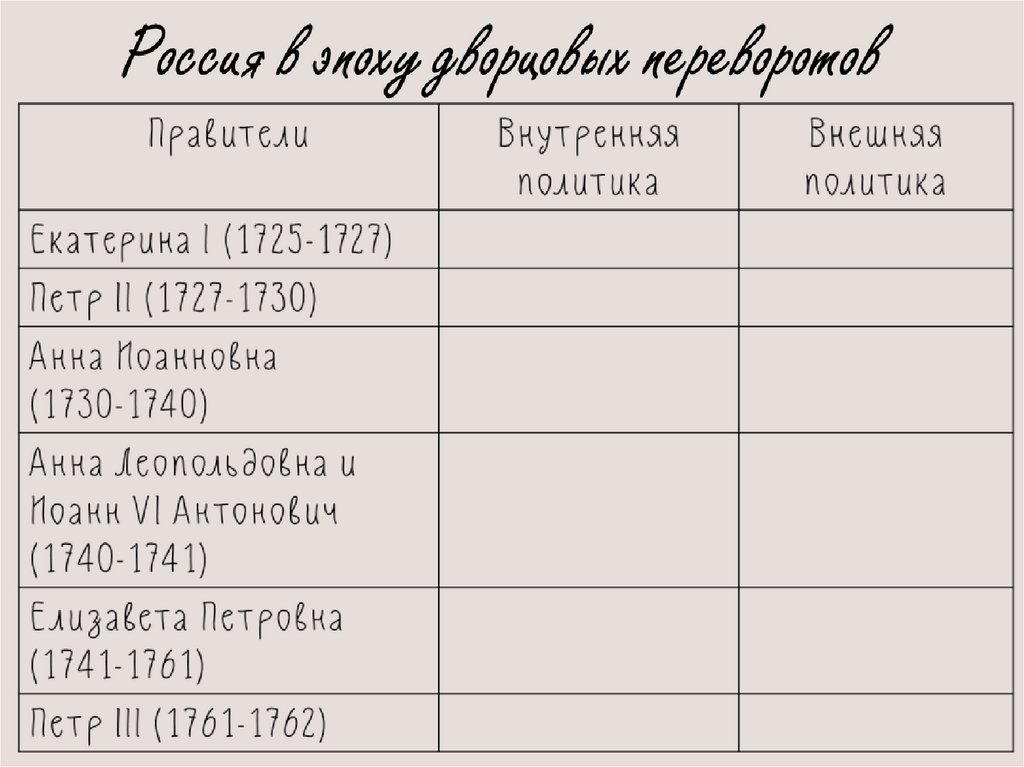 Россия после Петра для СГ