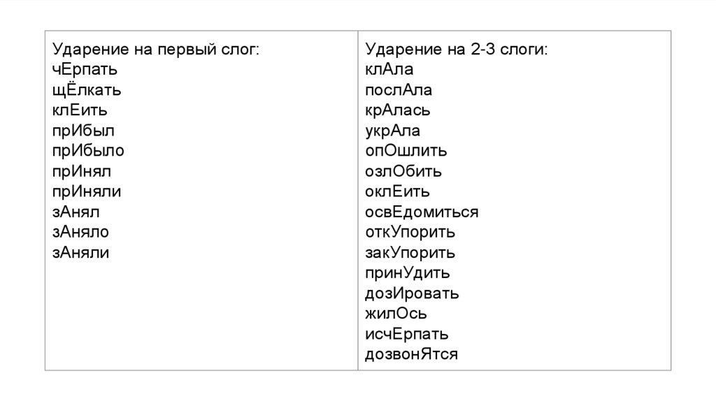 Ударение на 2-3-4 слоги:
