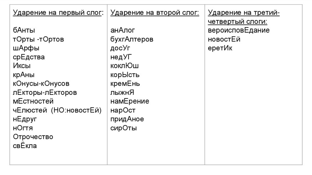 Русское ударениеЗадание 4 ЕГЭ по русскому языку