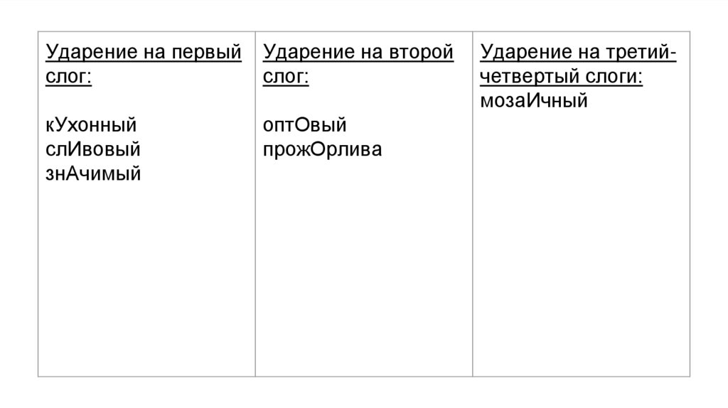 Ударение на 2-3 слоги: