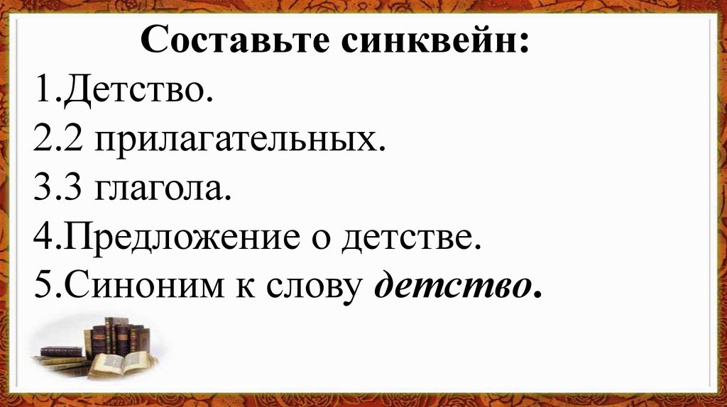 Составьте синквейн:1.Детство.