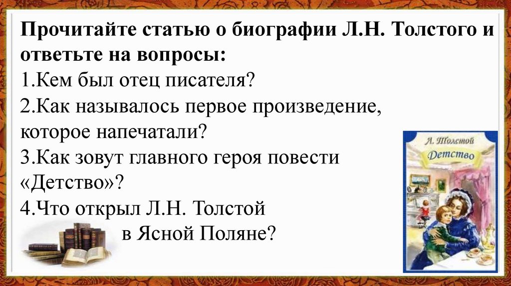 Прочитайте статью о биографии Л.Н. Толстого иответьте на вопросы: