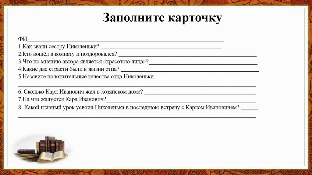 Заполните карточкуФИ___________________________________________________________________