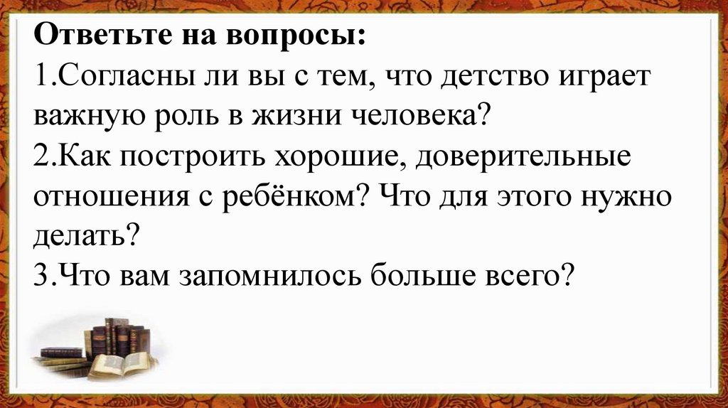 Ответьте на вопросы:1.Согласны ли вы с тем, что детство играет