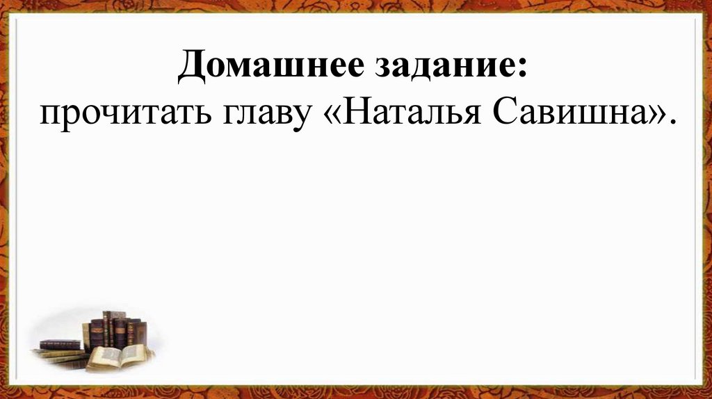 Домашнее задание:прочитать главу «Наталья Савишна».