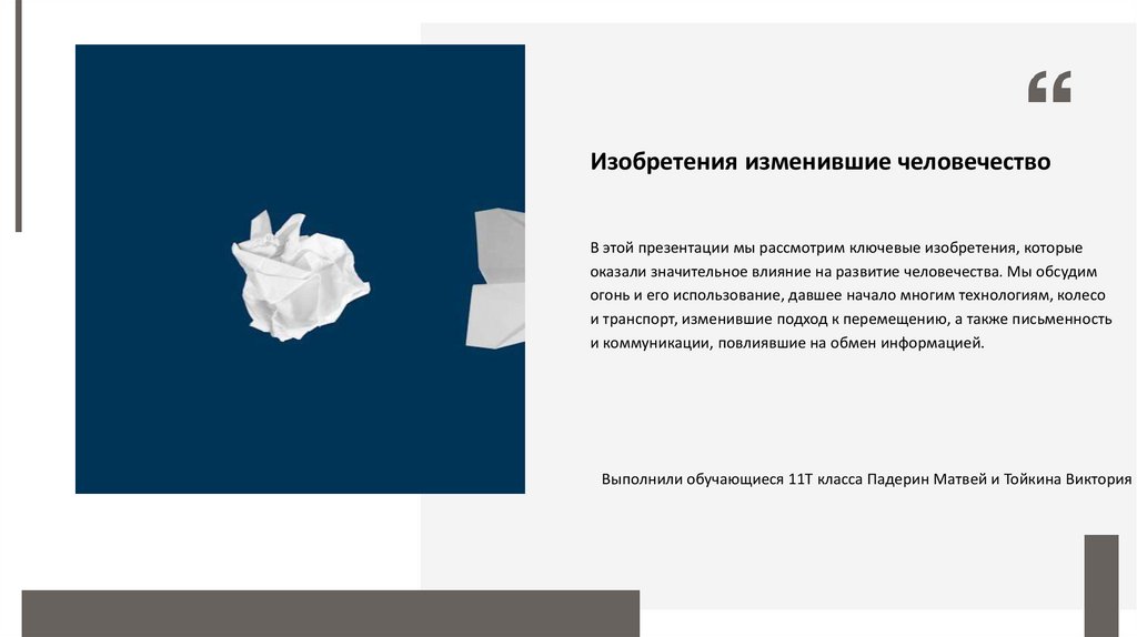 Изобретения изменившие человечествоВ этой презентации мы рассмотрим ключевые изобретения, которые