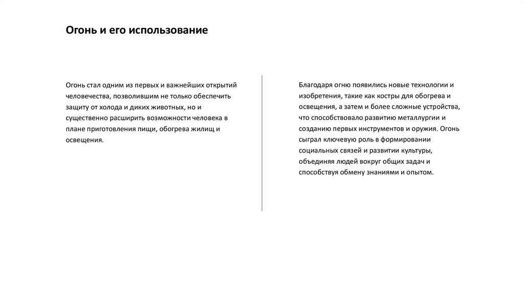 Огонь и его использованиеОгонь стал одним из первых и важнейших открытий