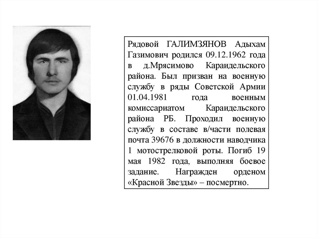 Рядовой ГАЛИМЗЯНОВ АдыхамГазимович родился 09.12.1962 года