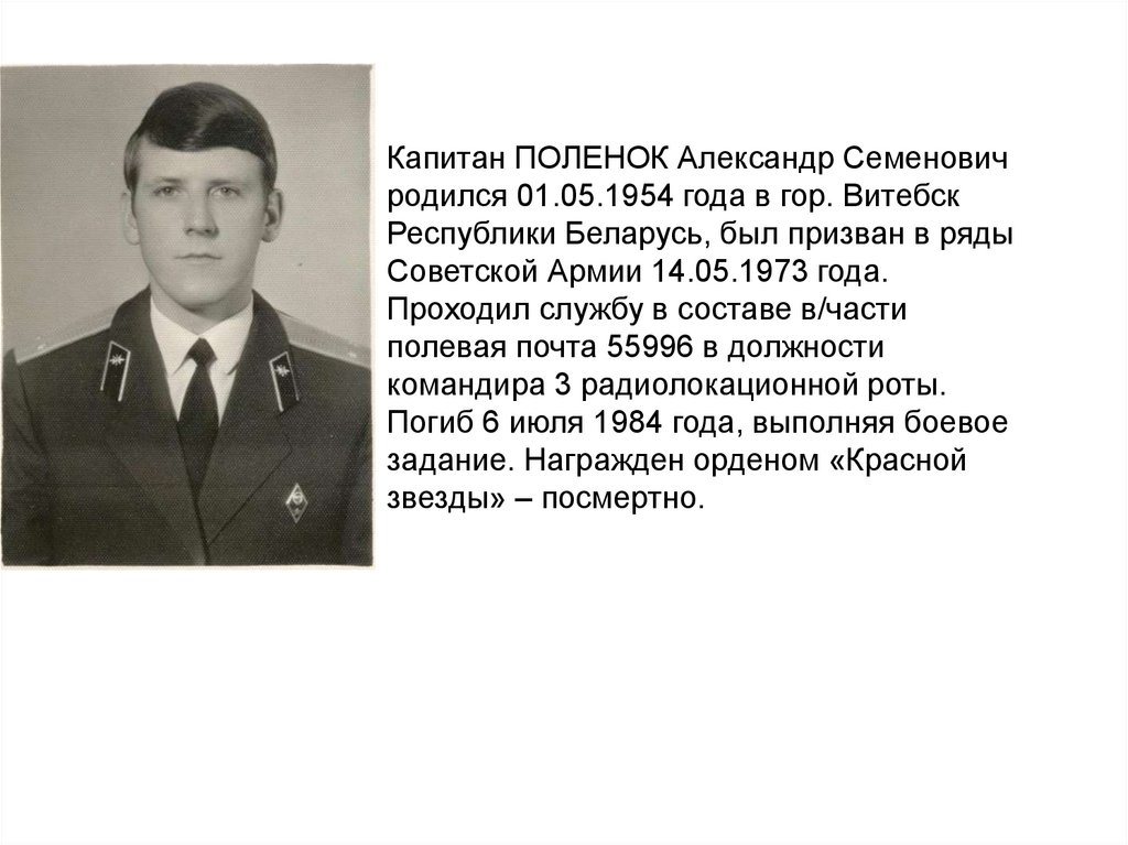 Капитан ПОЛЕНОК Александр Семеновичродился 01.05.1954 года в гор. Витебск