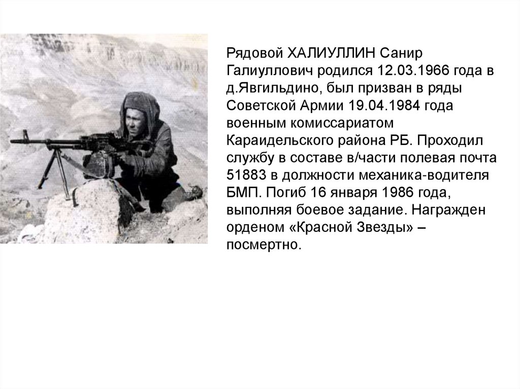 Рядовой ХАЛИУЛЛИН СанирГалиуллович родился 12.03.1966 года в