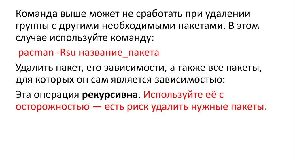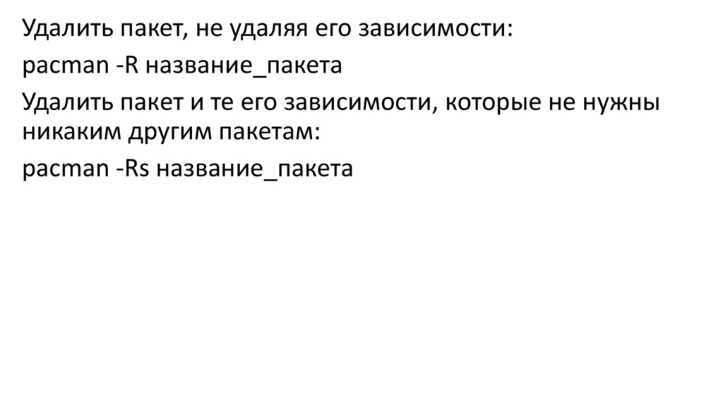 • проверка зависимостей: pacman самостоятельно отслеживает