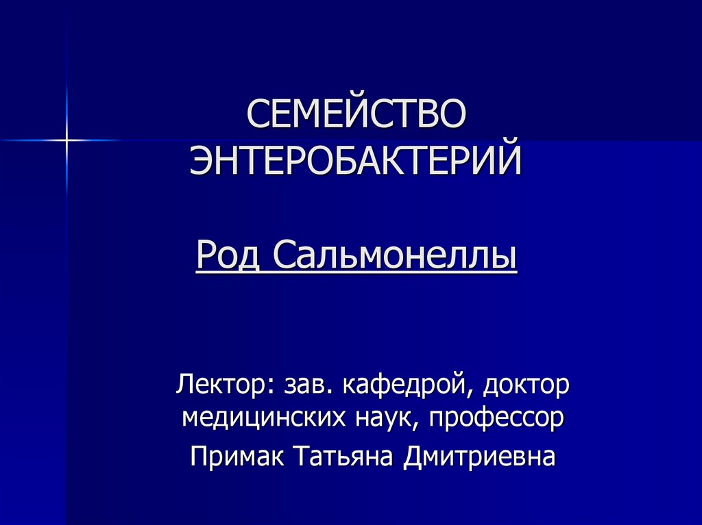 1. СЕМЕЙСТВО ЭНТЕРОБАКТЕРИЙ Род Сальмонеллы