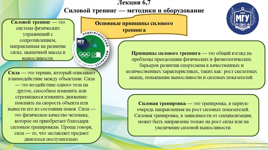 Лекция 6,7Силовой тренинг — методики и оборудование