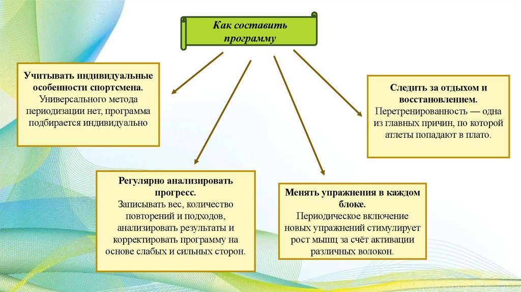 менять нагрузку от тренировки к тренировке, организм