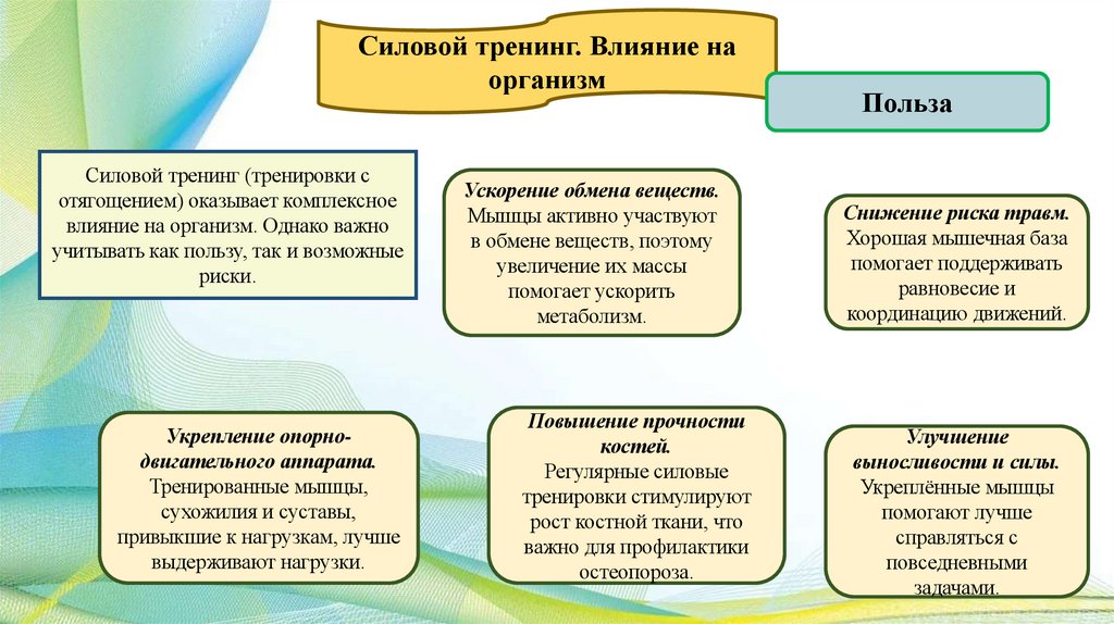 Силовой тренинг. Влияние наорганизм
