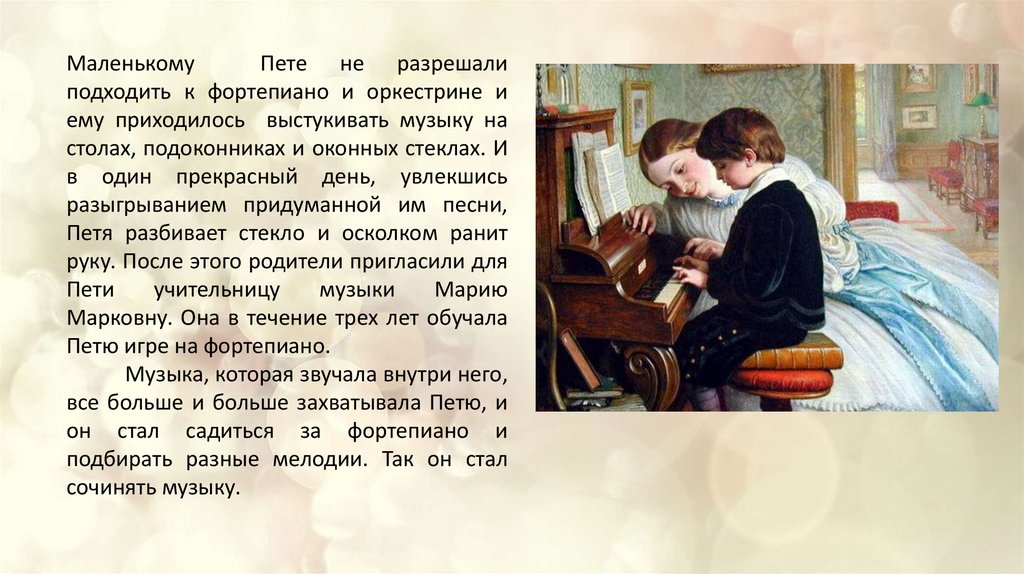 3. Музыка всегда звучала вокруг будущего композитора. Играла на фортепиано и пела его мама, играл на флейте и пел его отец. Очень