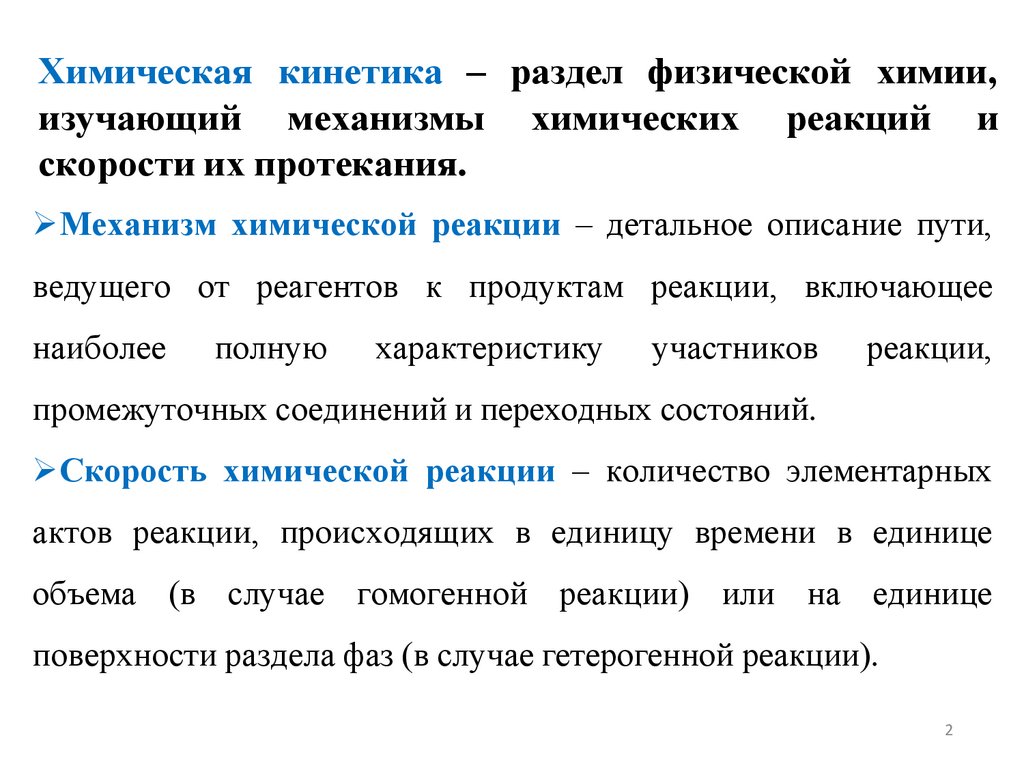 Химическая кинетика – раздел физической химии,изучающий механизмы химических реакций и