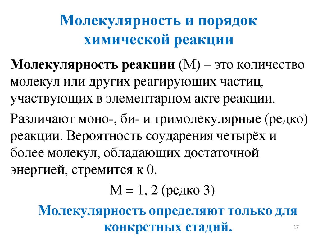 Элементарным актом реакции называют либо распадодной частицы (молекулы или иона), либо одновременное
