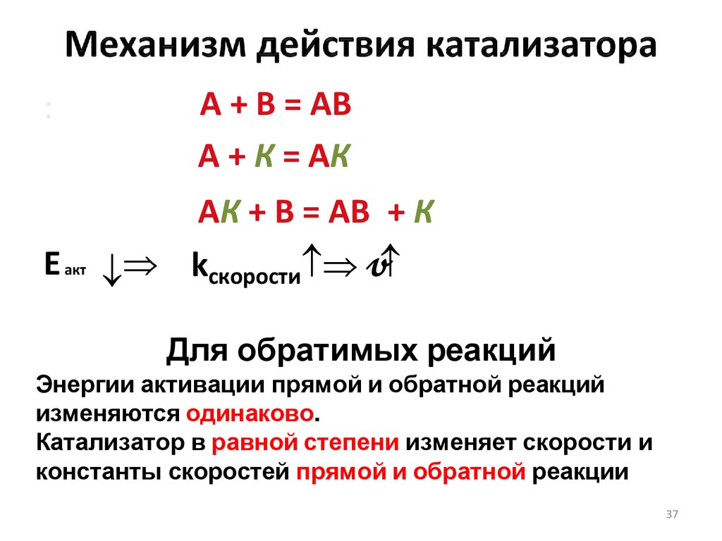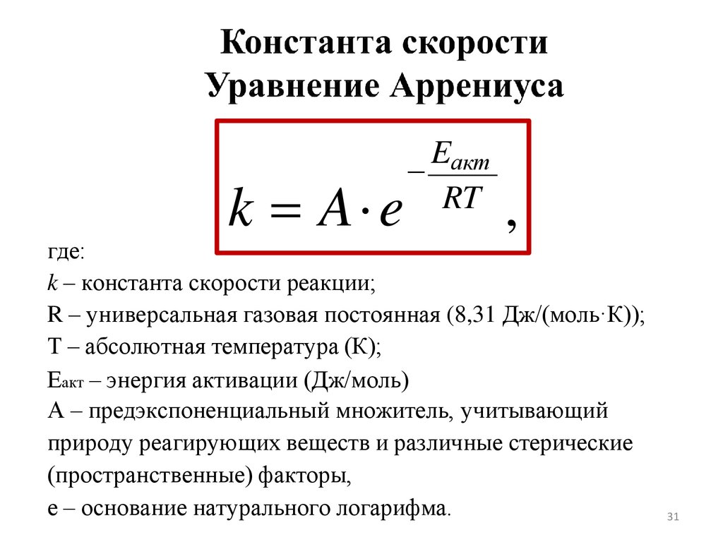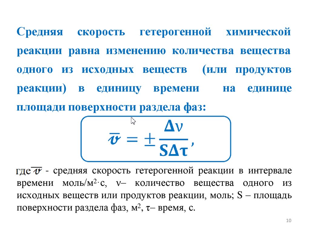 поверхности раздела фаз (в случае гетерогенной реакции).