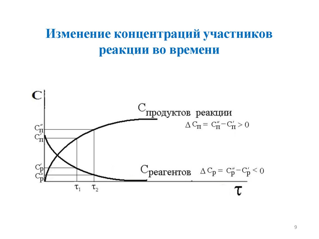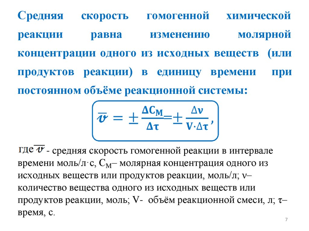 продуктов реакции, моль; V- объём реакционной смеси, л; τ–