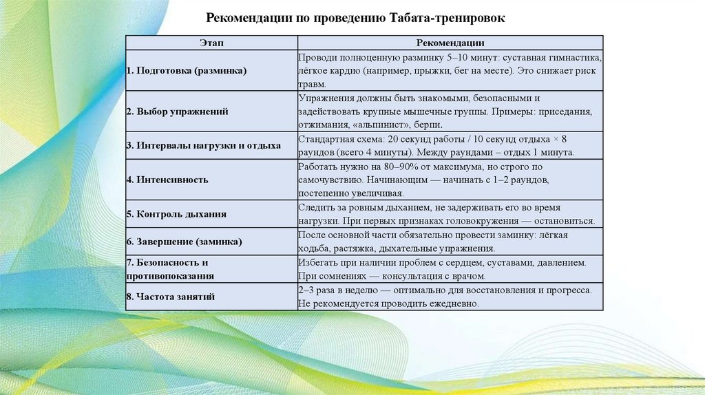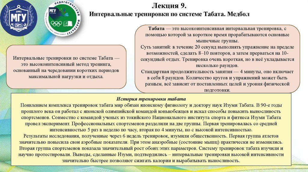 Лекция 9.Интервальные тренировки по системе Табата. Медбол