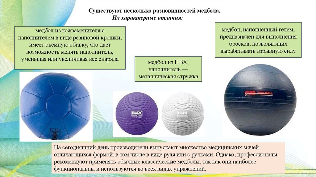 Новичкам в спорте следует начинать работать с мячом небольшого веса, имеющим ручки по
