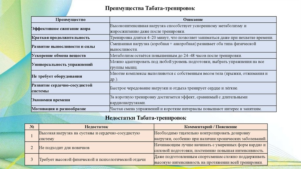 Табата эффективнее при ограниченном времени и для ускоренного сжигания жира, но требует хорошей подготовки и