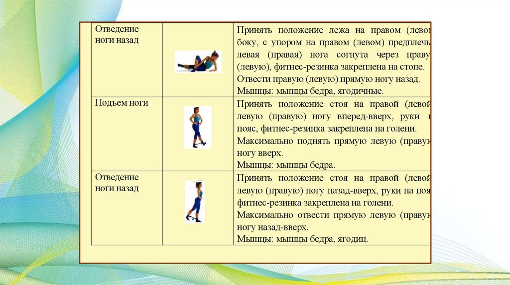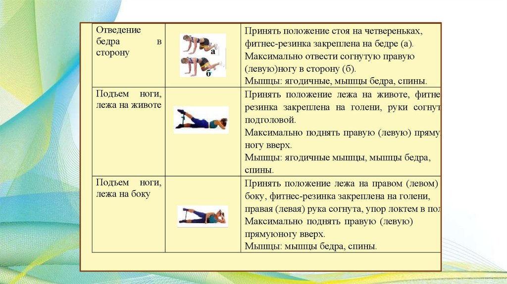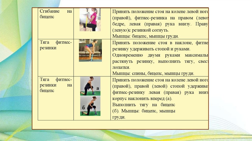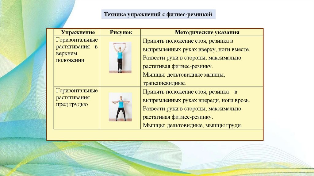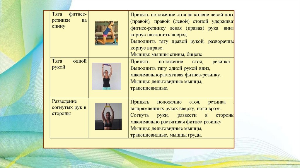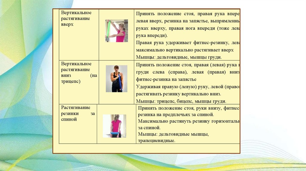 группы мышц благодаря эффекту сопротивления. Меняя амплитуду растяжения резинки, можно