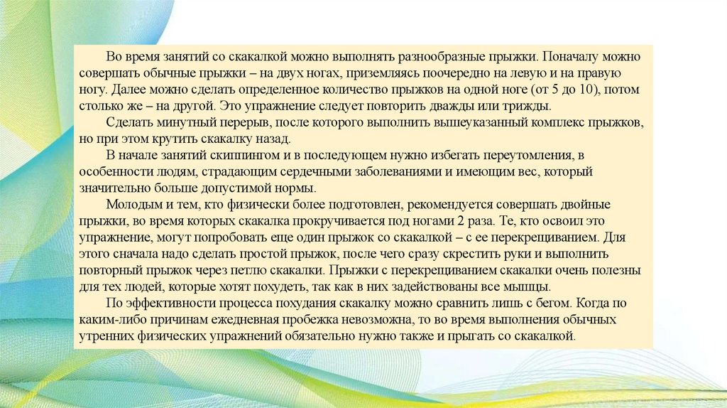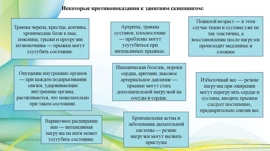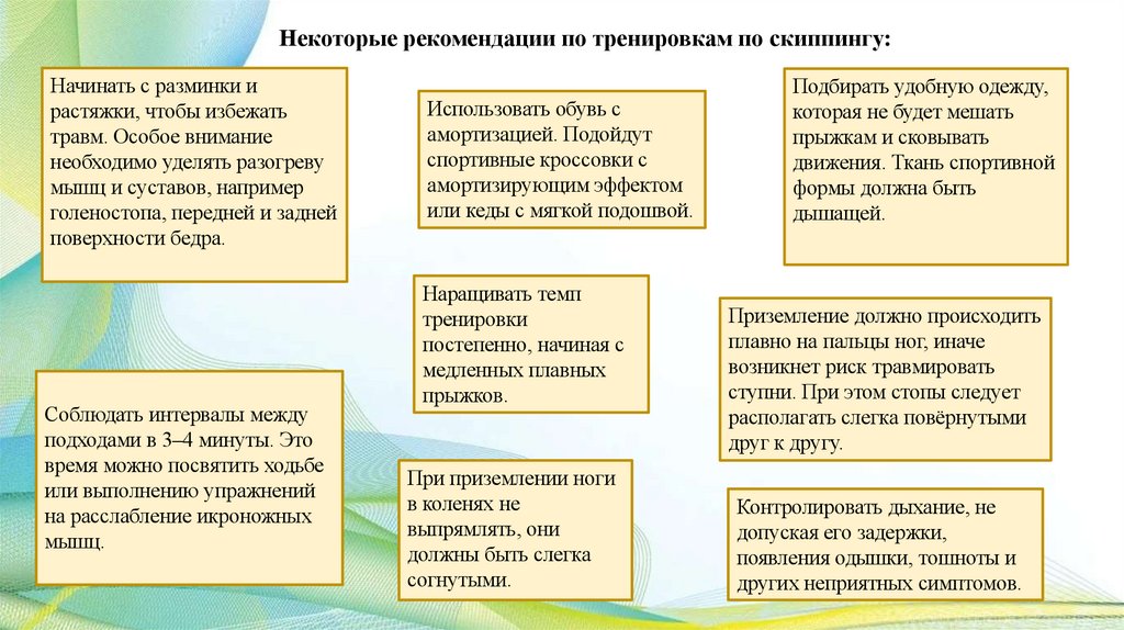В начале занятий скиппингом и в последующем нужно избегать переутомления, в