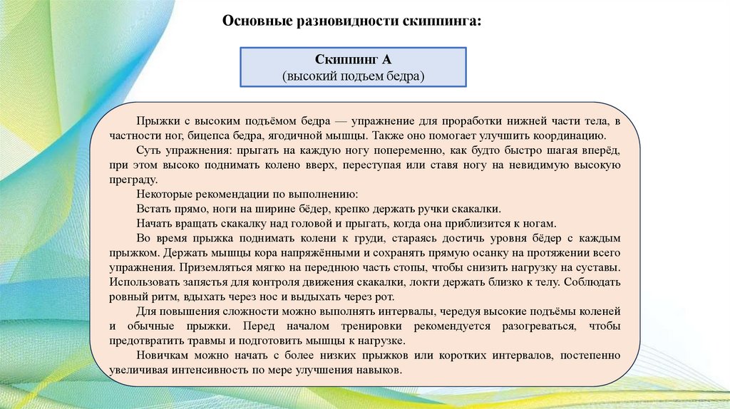 совершенствования навыков скиппинга.