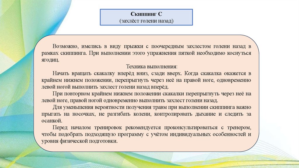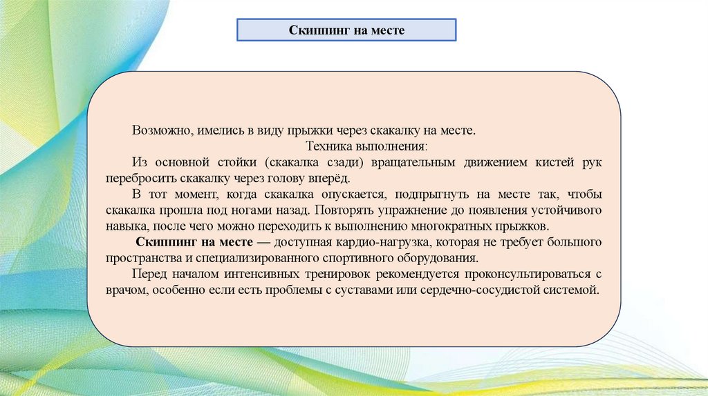упражнений скиппинга.