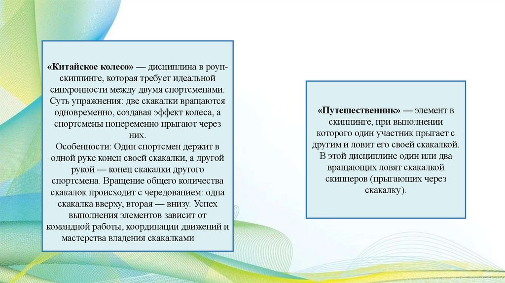 «Китайское колесо» — дисциплина в роупскиппинге, которая требует идеальнойсинхронности между двумя спортсменами.
