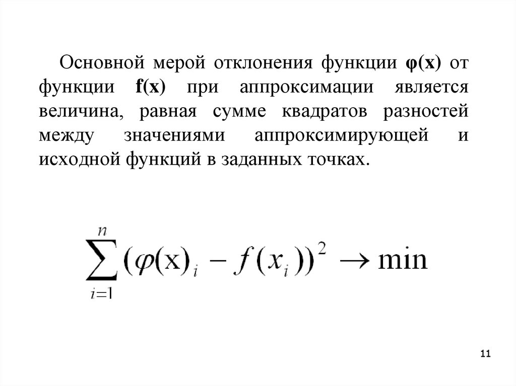 Основной мерой отклонения функции φ(x) отфункции f(x) при аппроксимации является
