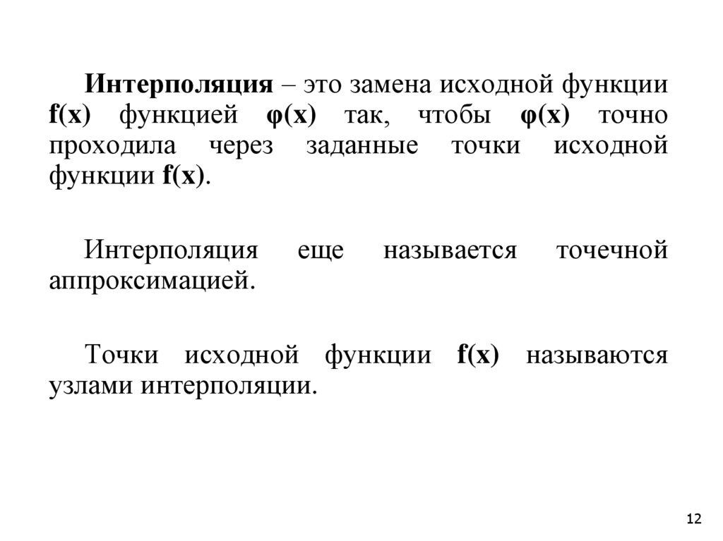Аппроксимация – это замена исходнойфункции f(x) функцией φ(x) так, чтобы отклонение