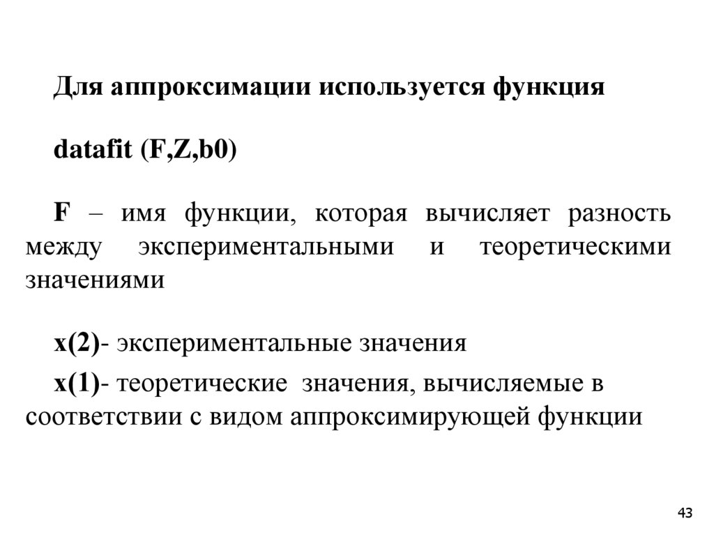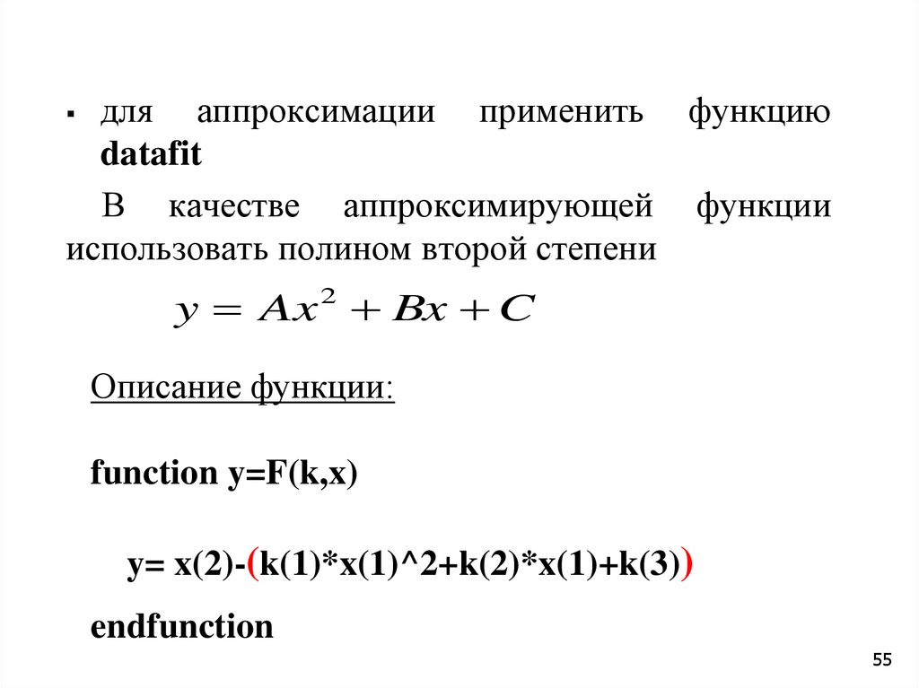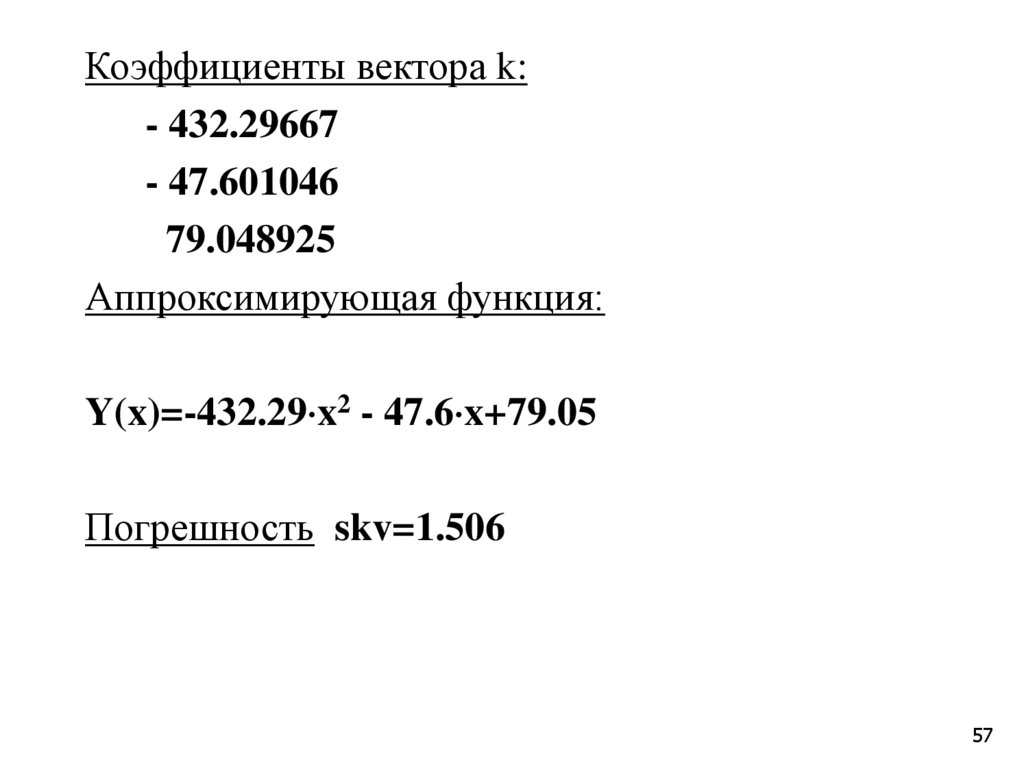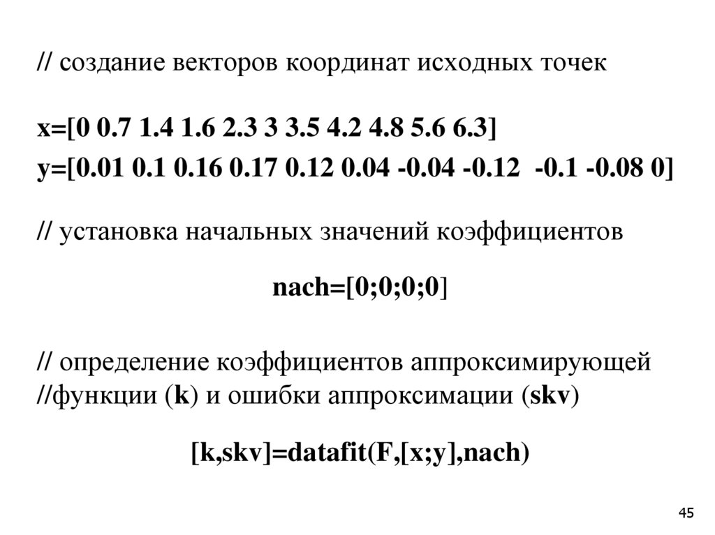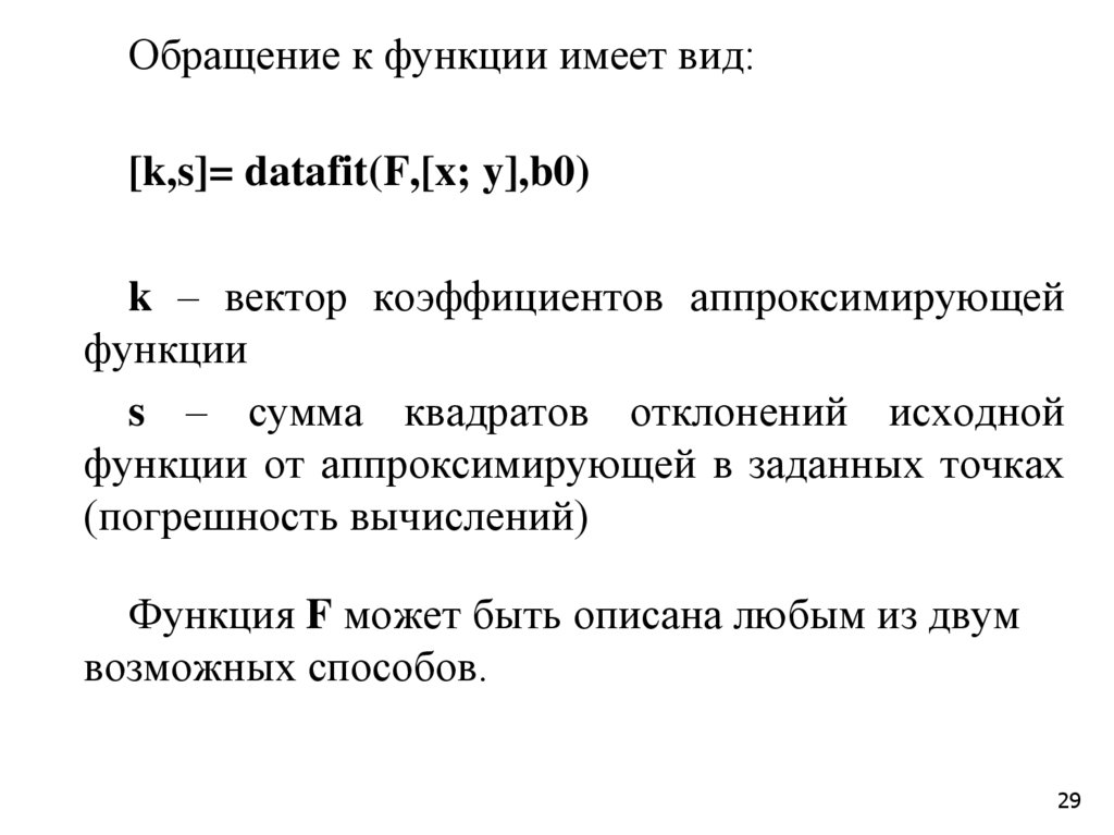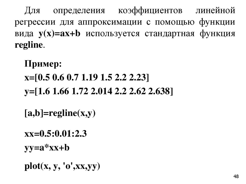 Для определения коэффициентов линейнойрегрессии для аппроксимации с помощью функции