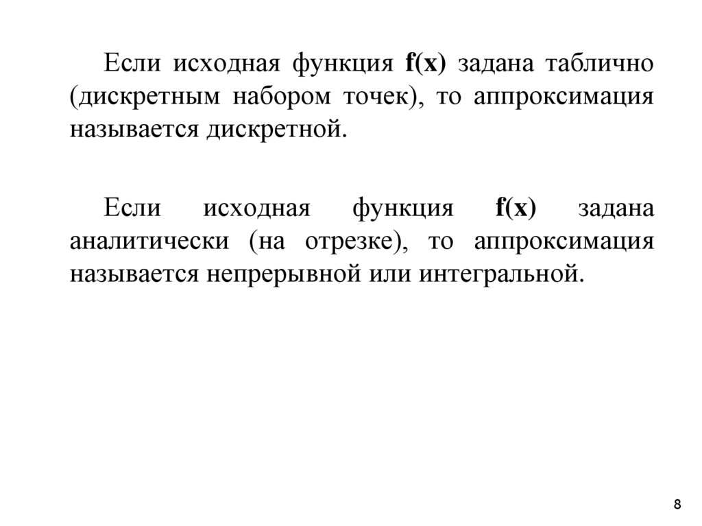 Если исходная функция f(x) задана таблично(дискретным набором точек), то аппроксимация