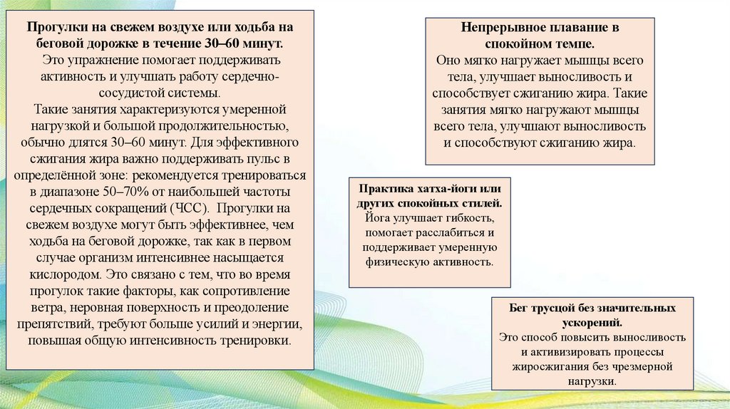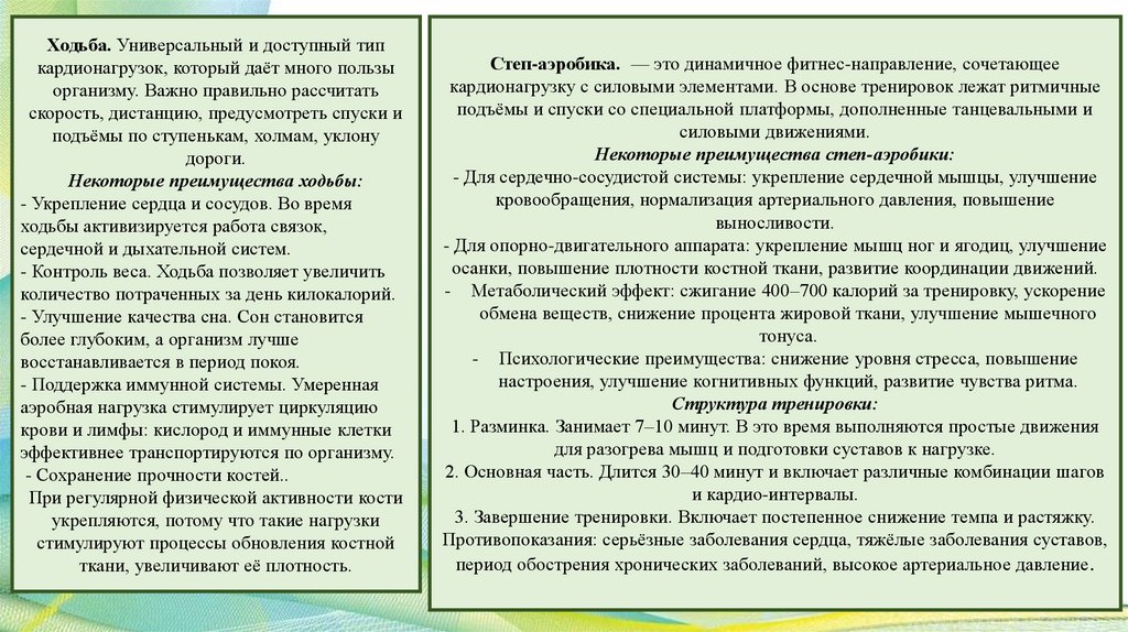 активности, направленных на укрепление сердечно-сосудистой и дыхательной систем. Они основаны на