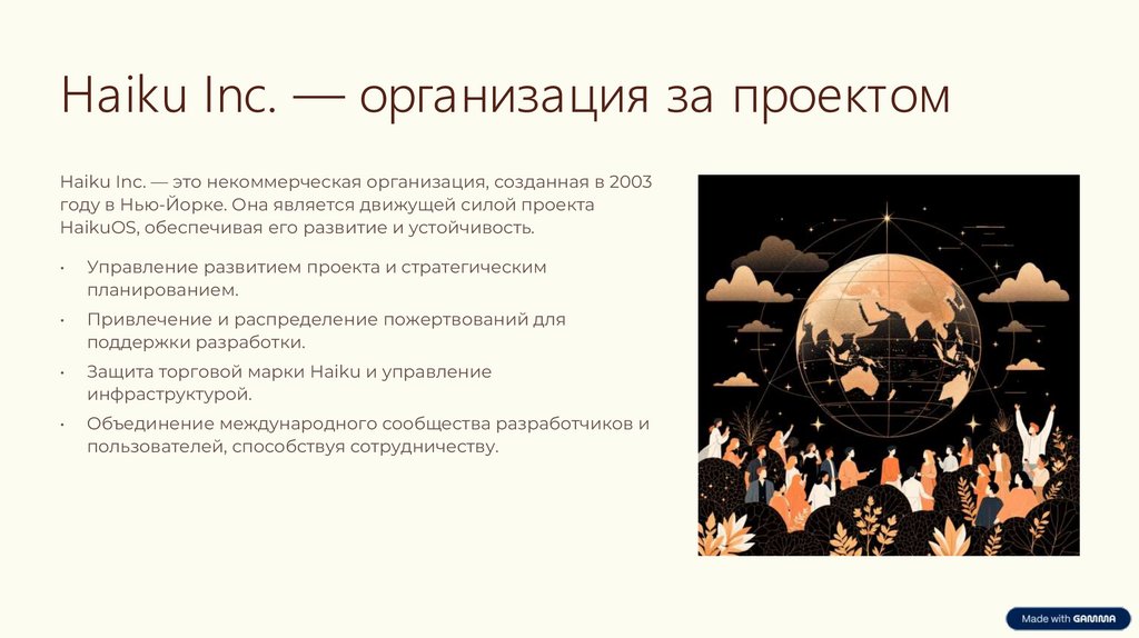 Haiku Inc. — организация за проектомHaiku Inc. — это некоммерческая организация, созданная в 2003